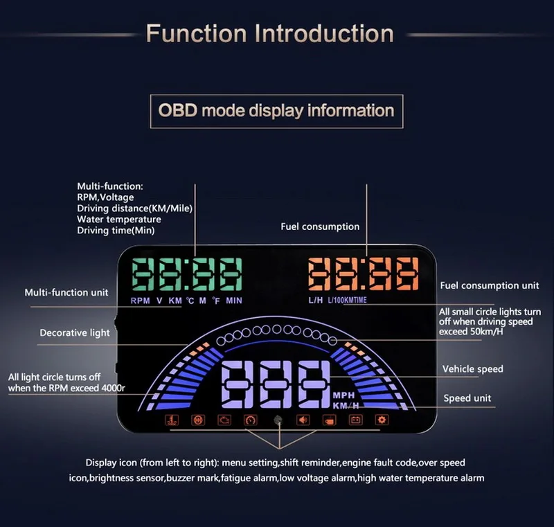 Related Product for Overspeed alarm Digital Voltage Ometer S7 Smart 5.8" HD Windshield Projector HUD display OBD+GPS Sy