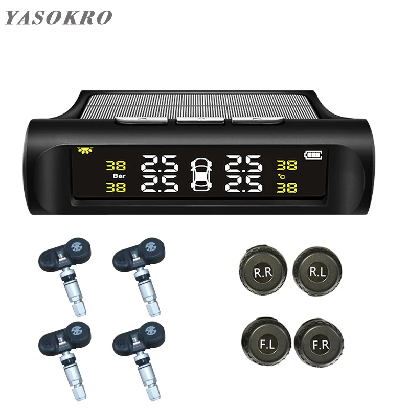 Related Product for YASOKRO Solar TPMS Car Tire Pressure Alarm Monitor System Solar Charging LCD Display 4 External Sen